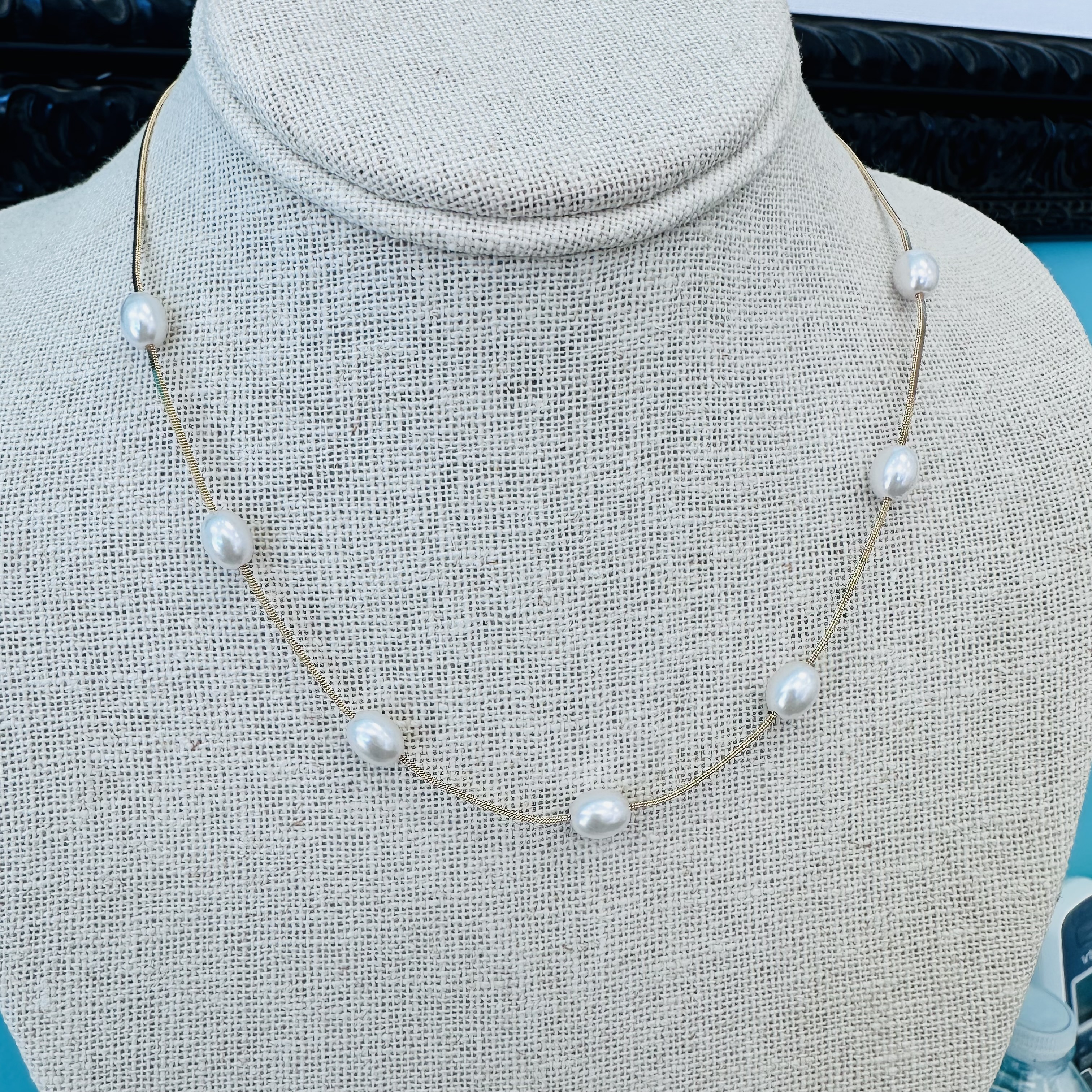The most popular pearl station necklace in top 1The top selling 18K Gold Plating is back in stock. This piece is a wedding party staple, everyday jewelry box must have. It is simple elegance, worn alone at 16", it can extend to 18".