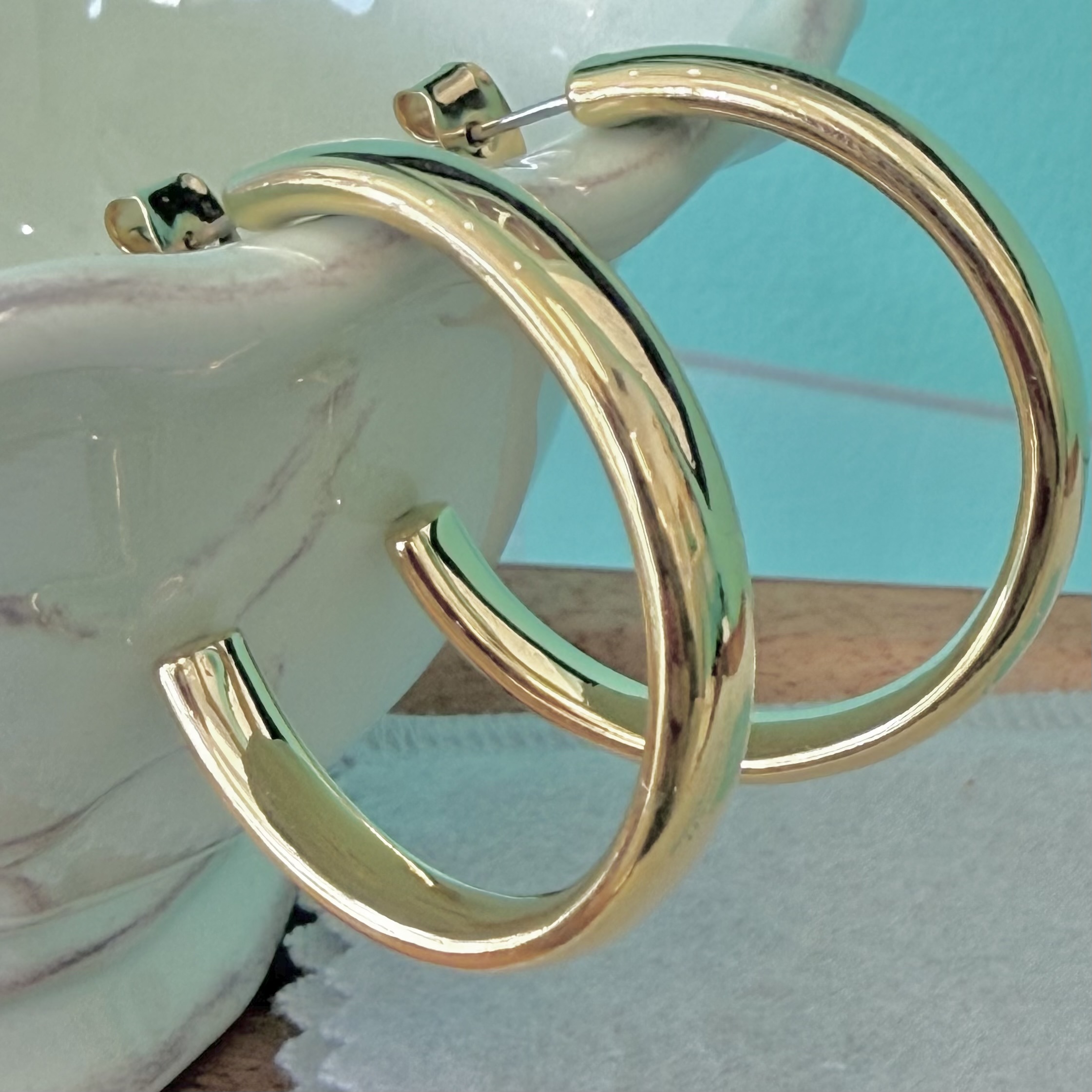 Lightweight and comfortable, the 1-inch size makes them ideal for daily wear—polished enough to elevate any look while remaining easy and versatile. With proper care, these hoops are tarnish resistant, making them a reliable go-to piece you’ll reach for again and again.