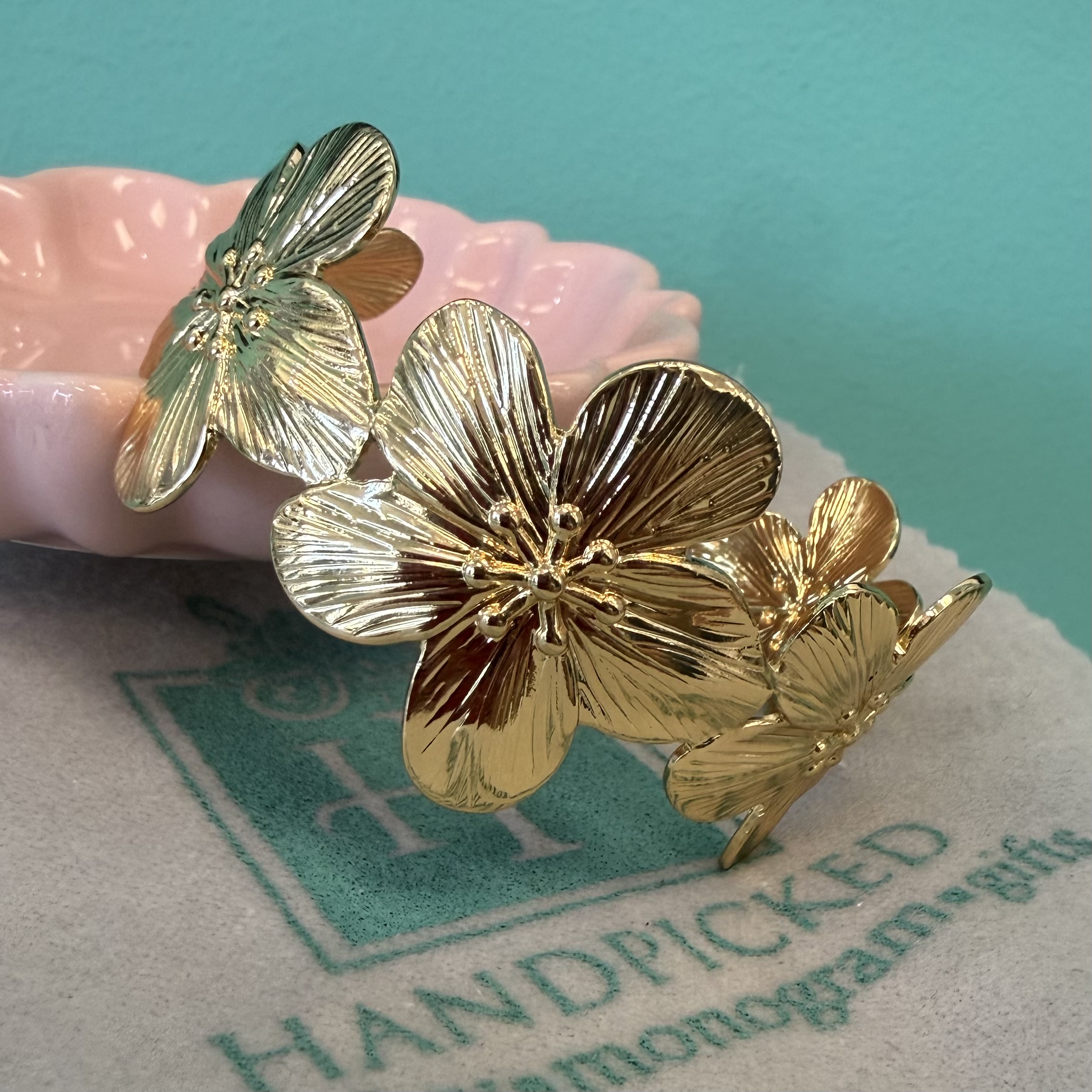 24K Gold Filled Wide Flower Cuff Bracelet