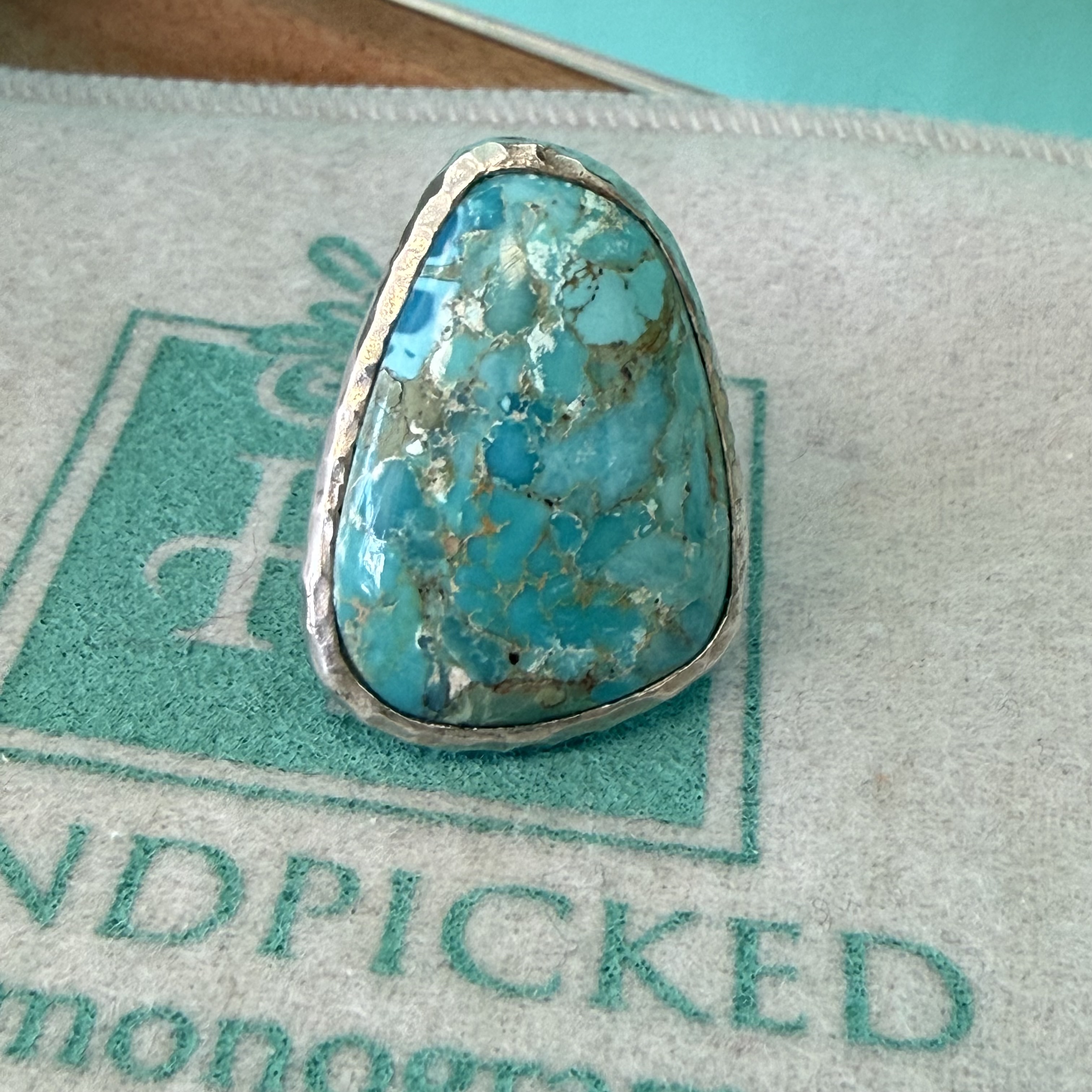 Abstract Genuine Turquoise Sterling Silver Ring- Size 7