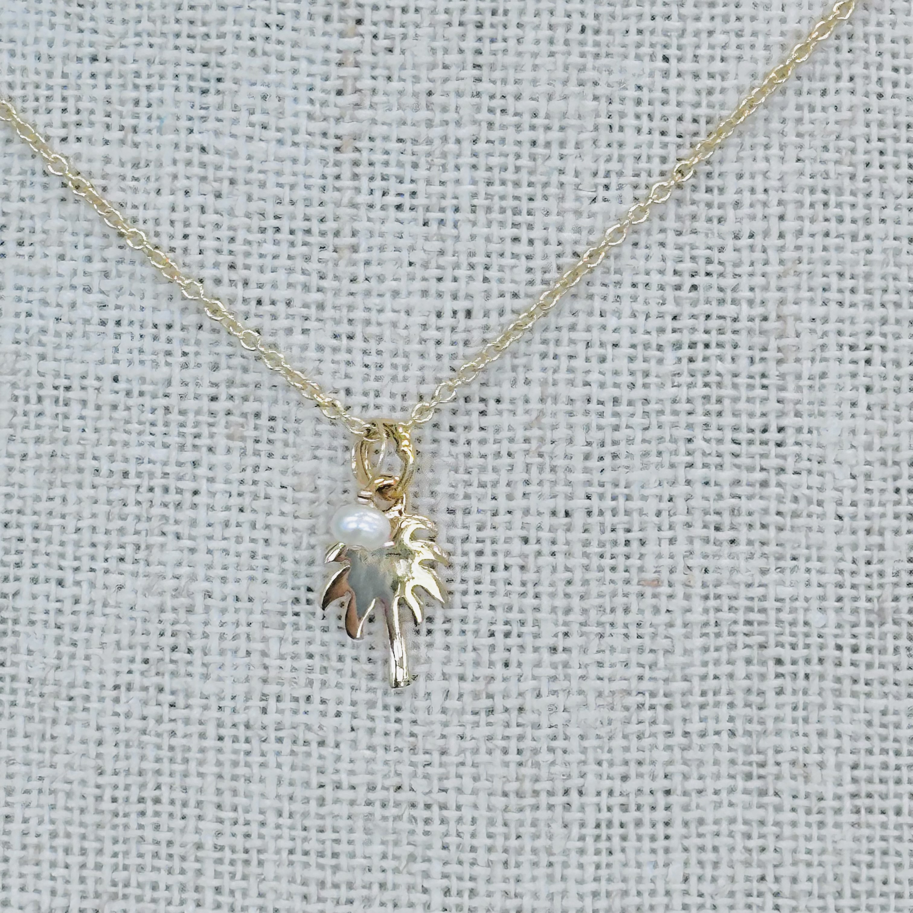 -3/4" (18 mm) palm with tiny pearl on 16-18" saturn chain