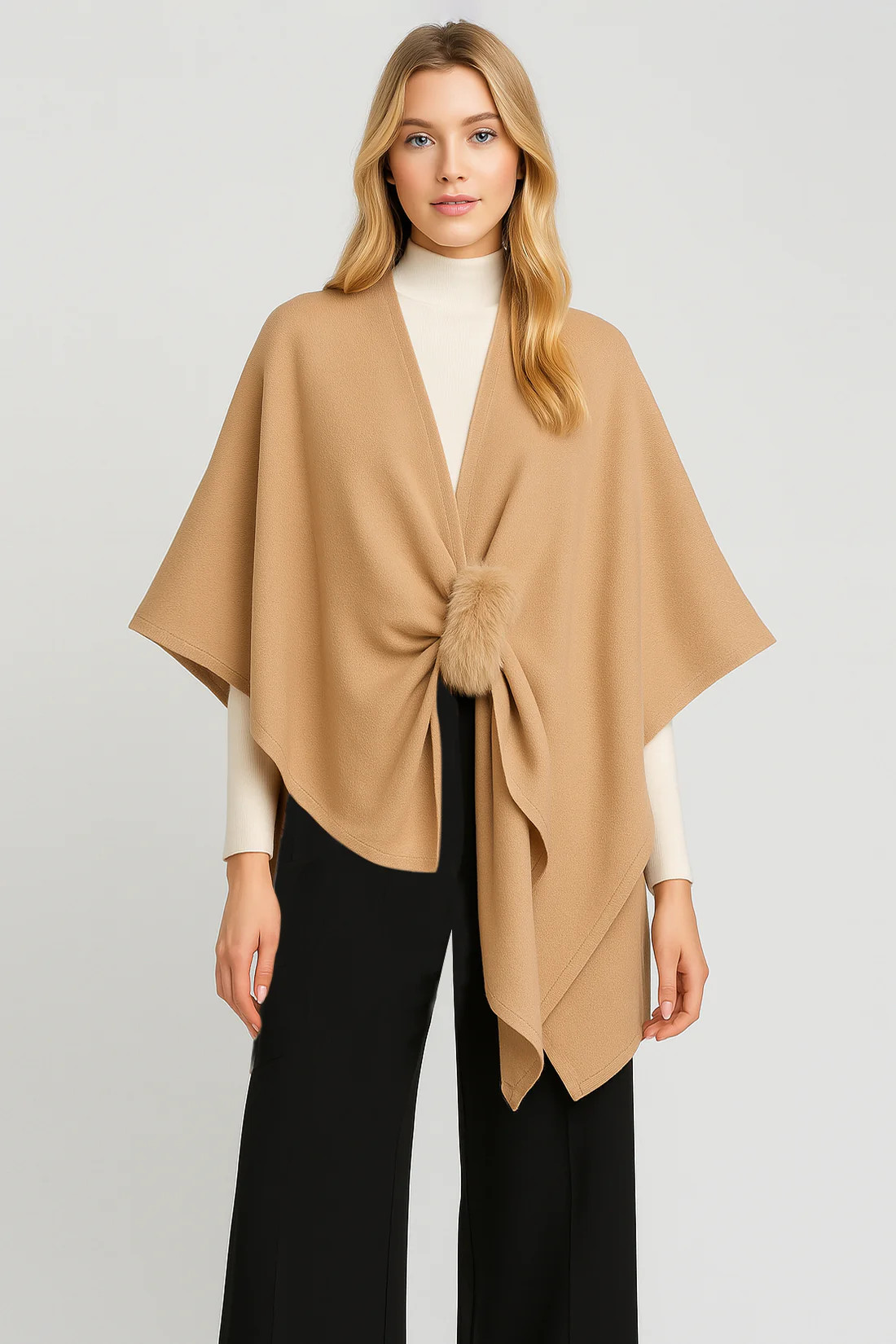 Get stylish Fur Strap Ruana - Camel
