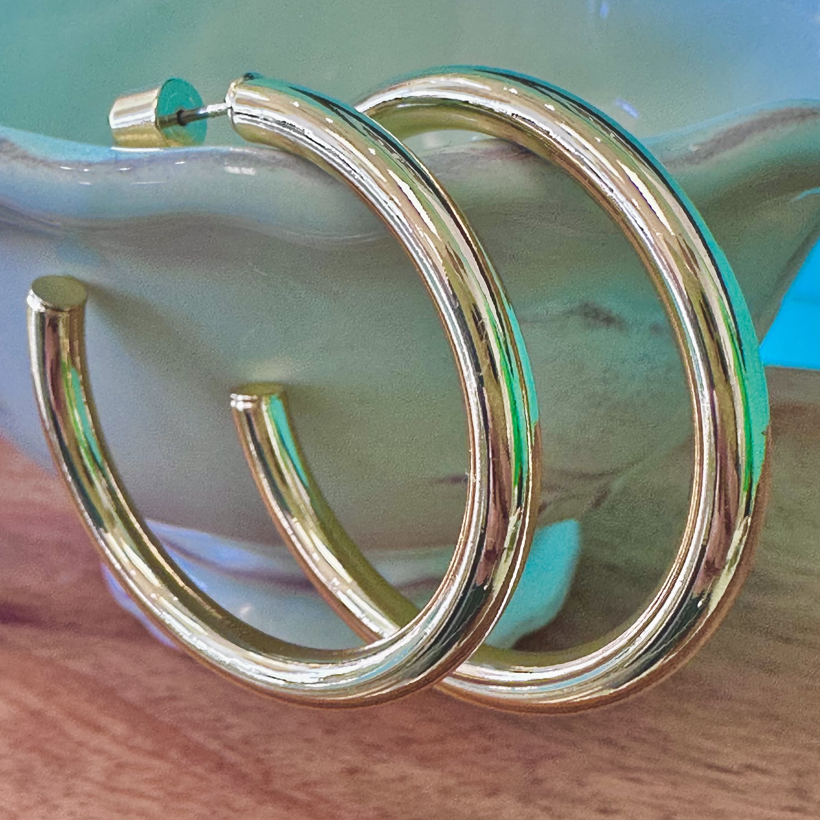 These 18k gold plated shiny hoops are your 1" basics for everyday wear! You will grab them again and again!