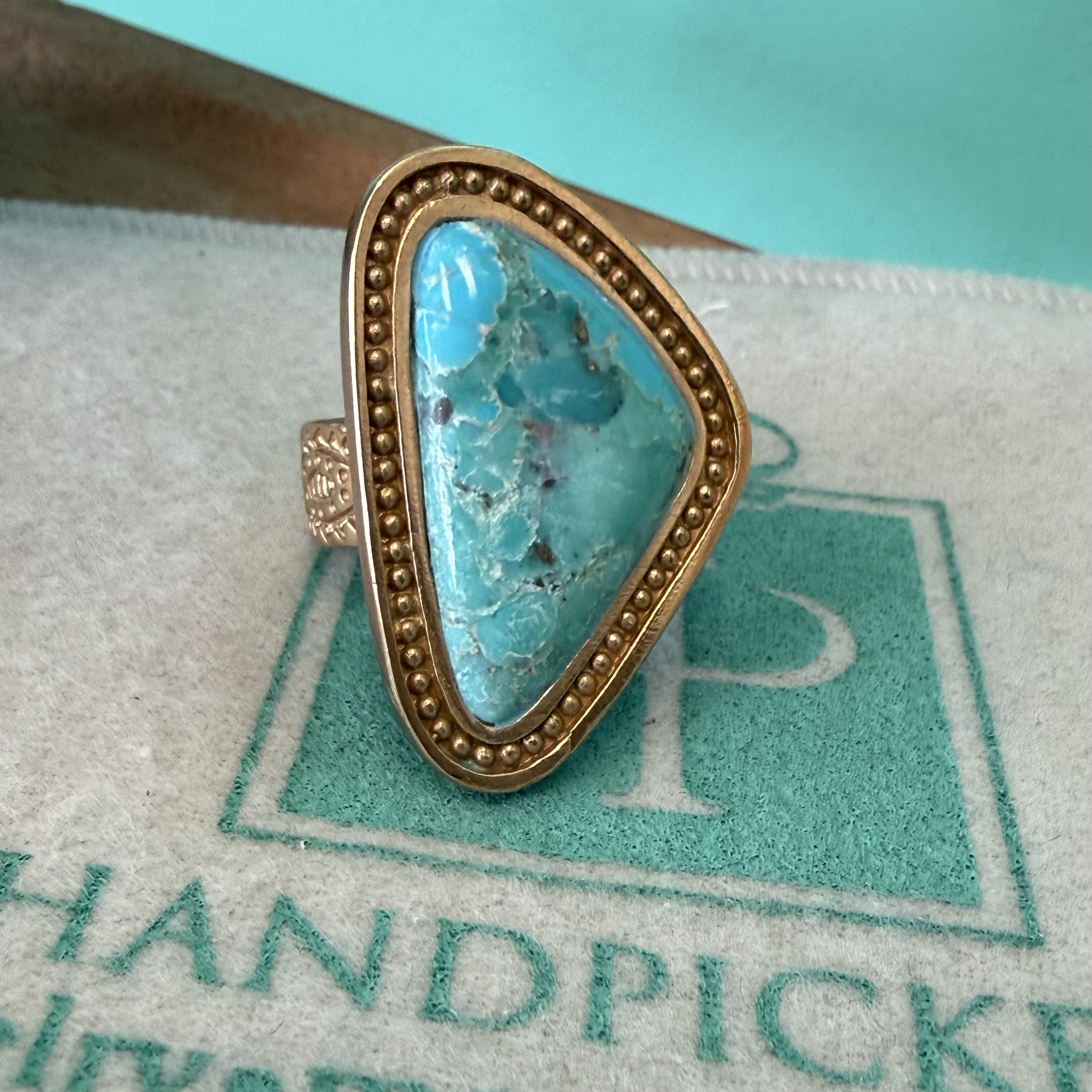 • Genuine turquoise stone center