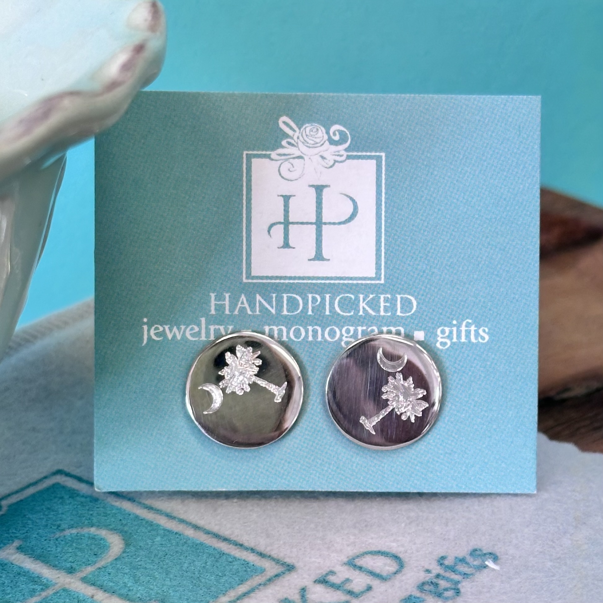 This is our most popular sterling silver monogram post earring of all time. They are hand-crafted by artisans of sterling silver and engraved for you by HandPicked.