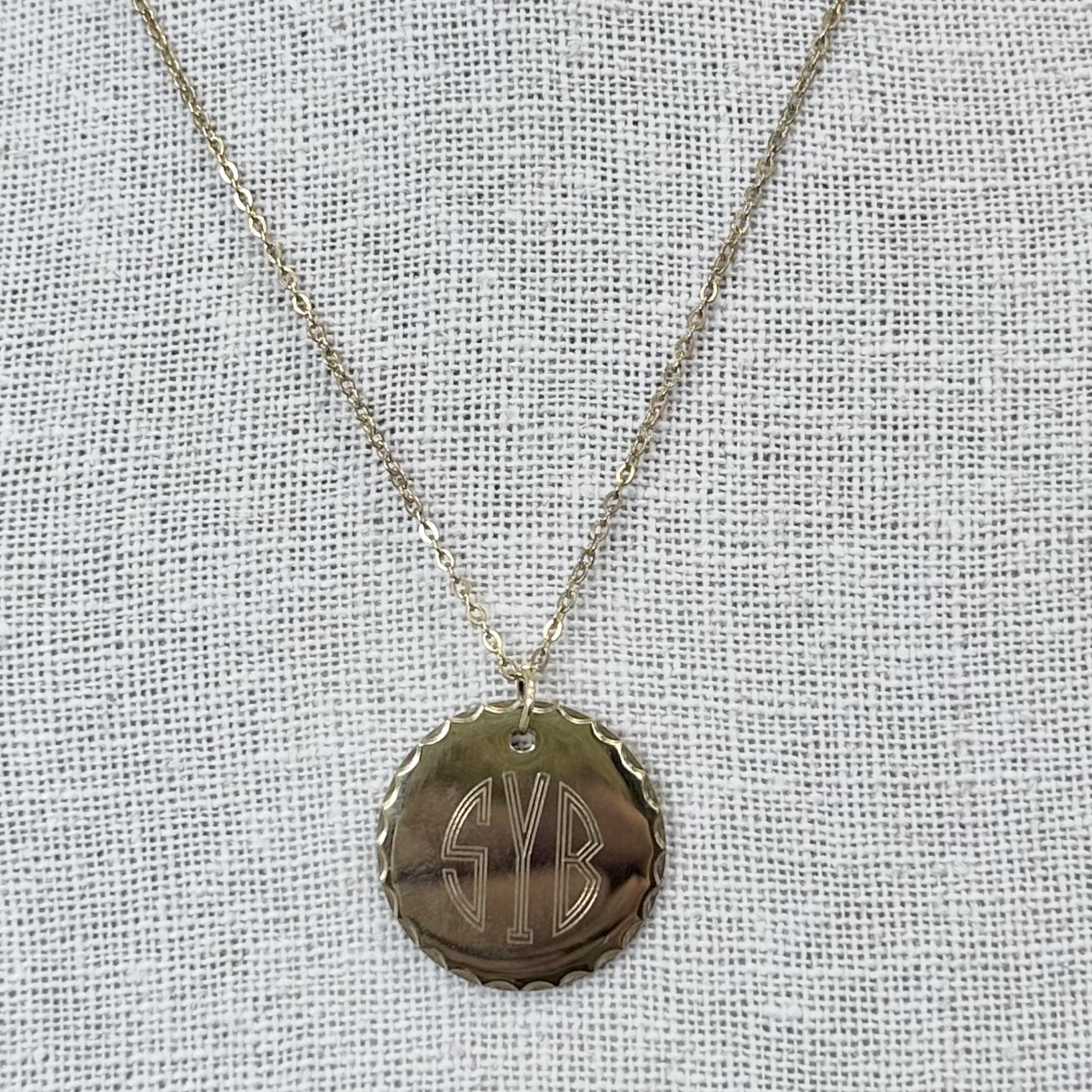 This style combines a 16" chain with a 25mm grooved pendant that can be personalized with your monogram on the front for free!