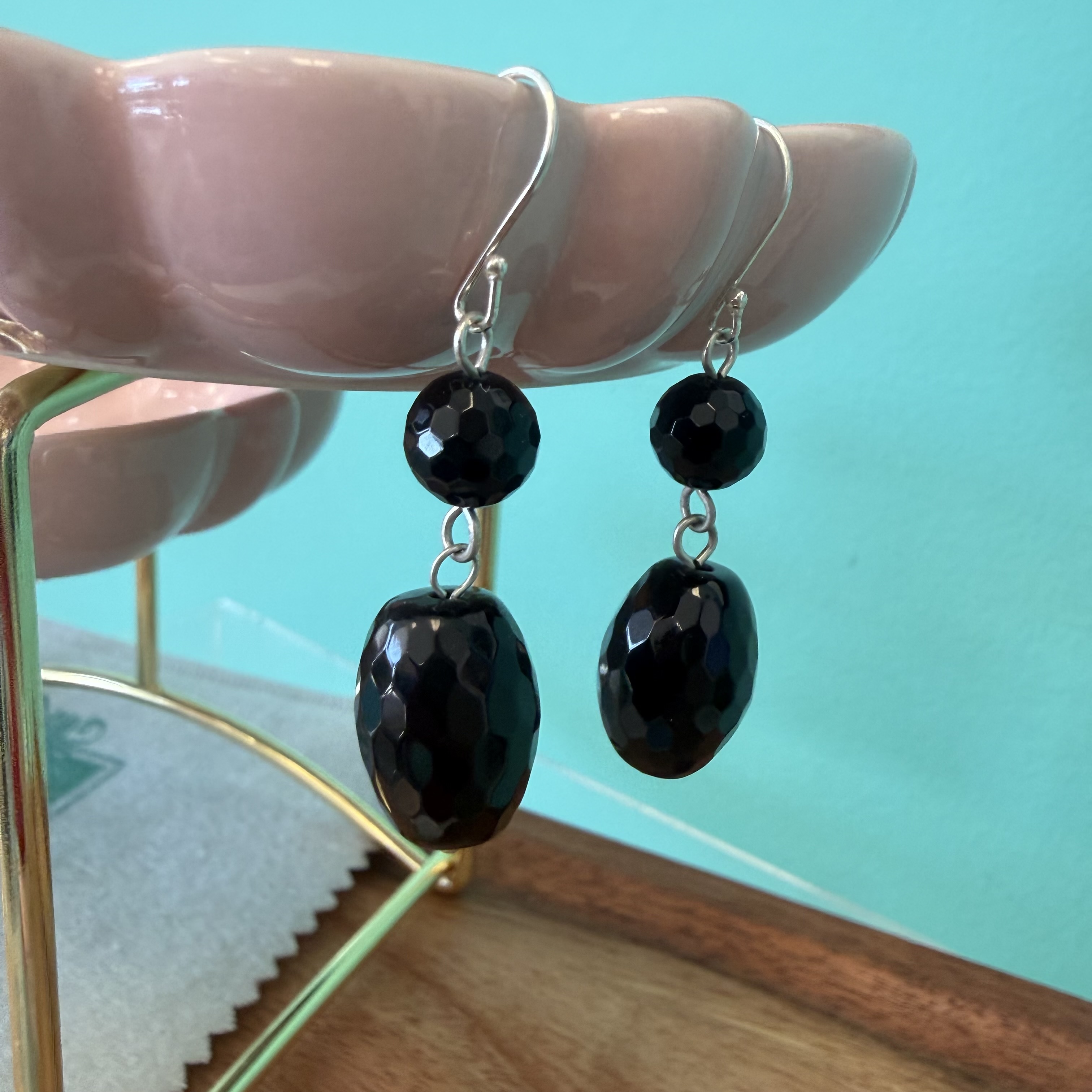 Onyx Faceted Sterling Drop Earrings