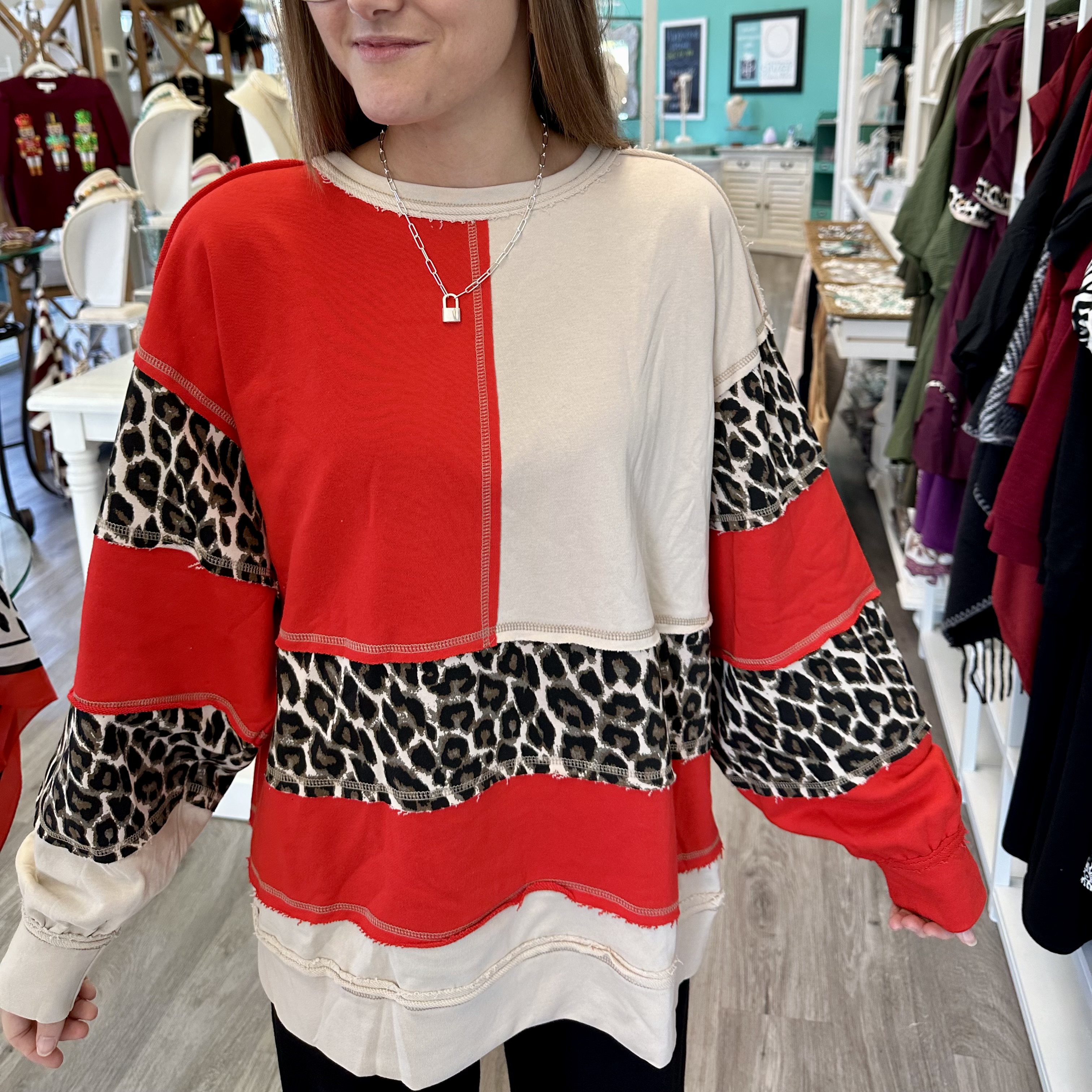 The contrast leopard oversized sweatshirt is comfy, stylish and oh so adorable!