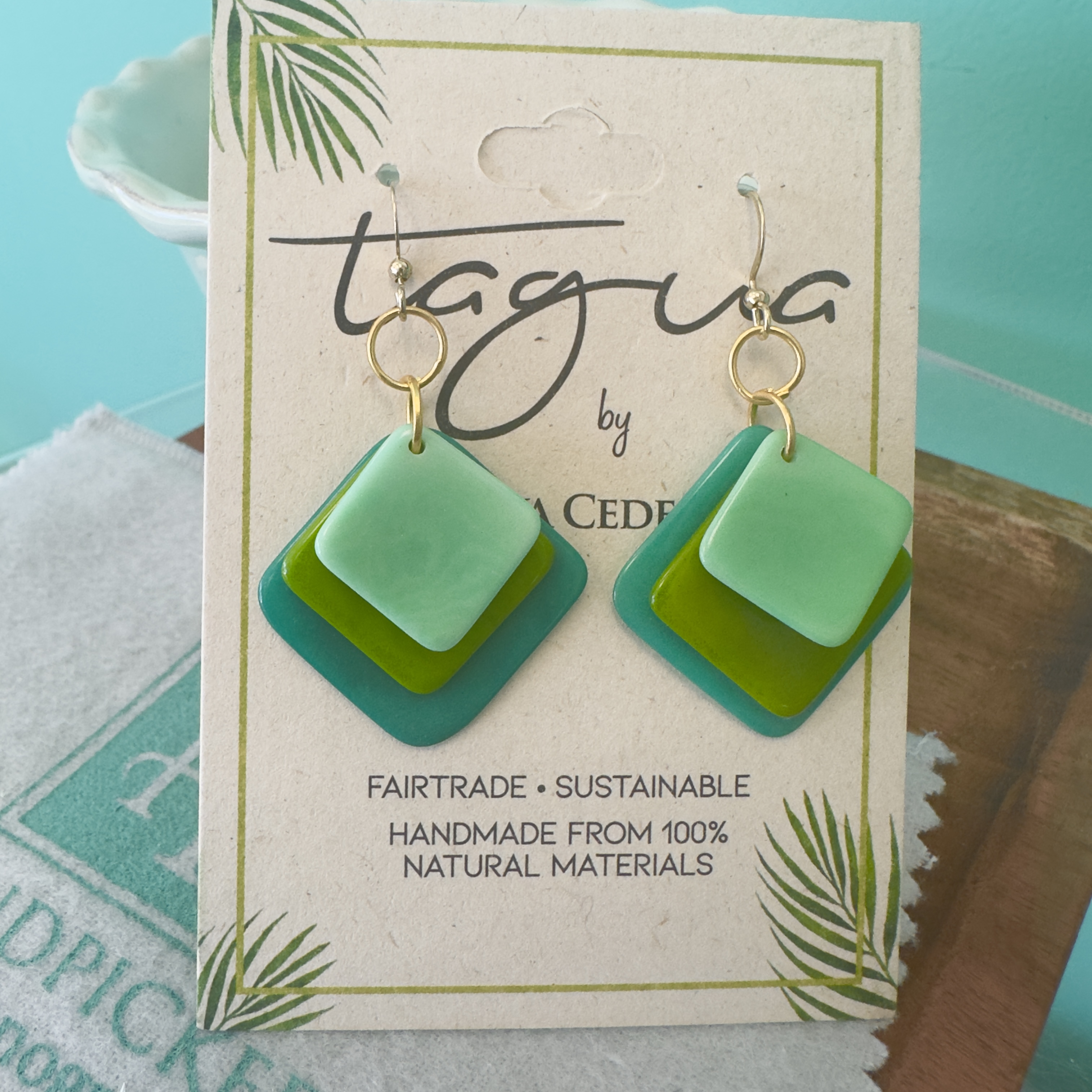 Add a pop of color and artisan charm to your look with the Minerva Dangle Earrings in Green Combo, exclusively crafted by Tagua. Each pair features layered graduated diamond shapes for dimension and they are designed to brighten any outfit with vibrant, eye-catching style.