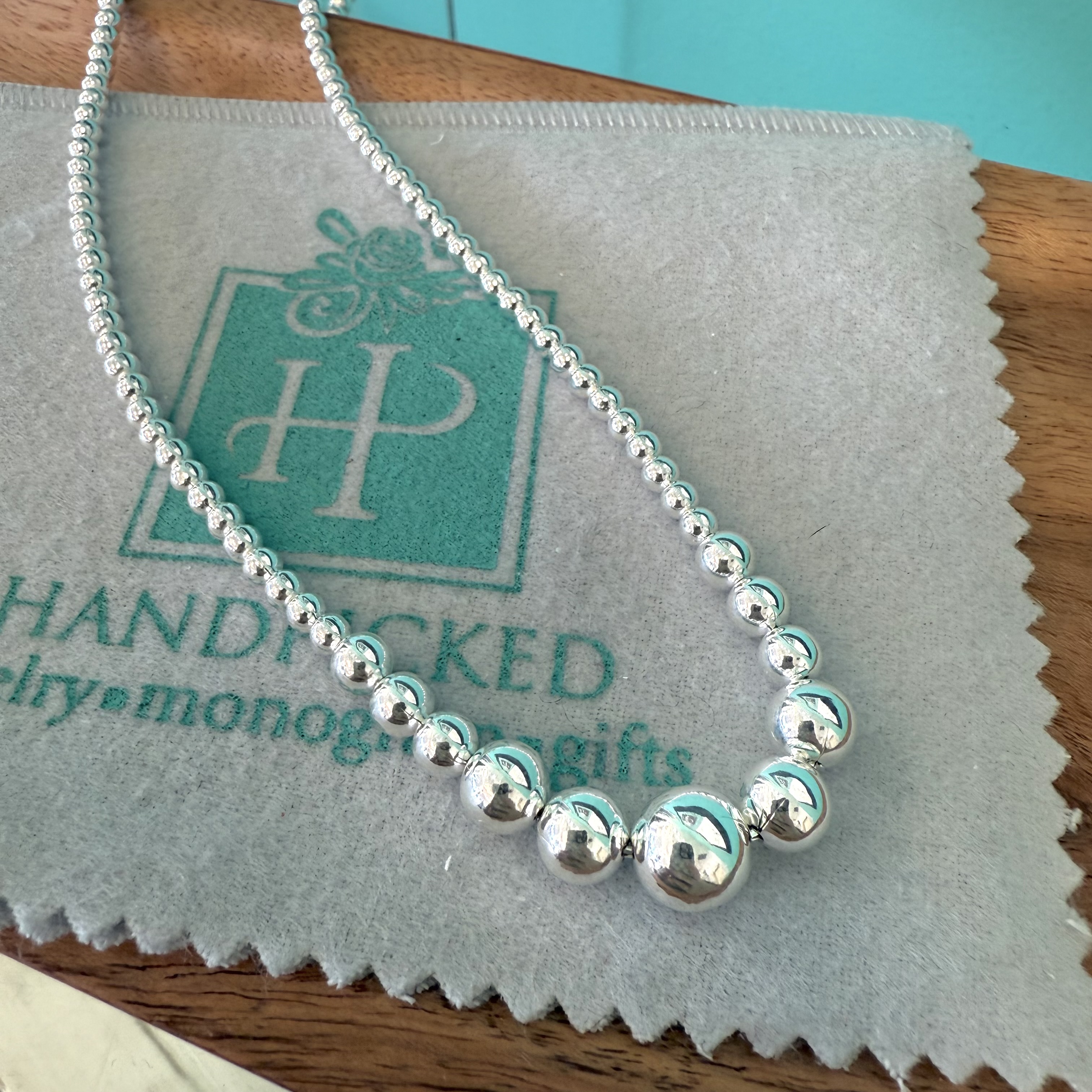 *Pictured with its matching bracelet. Click to shop > Graduated Sterling Silver Beads Bracelet