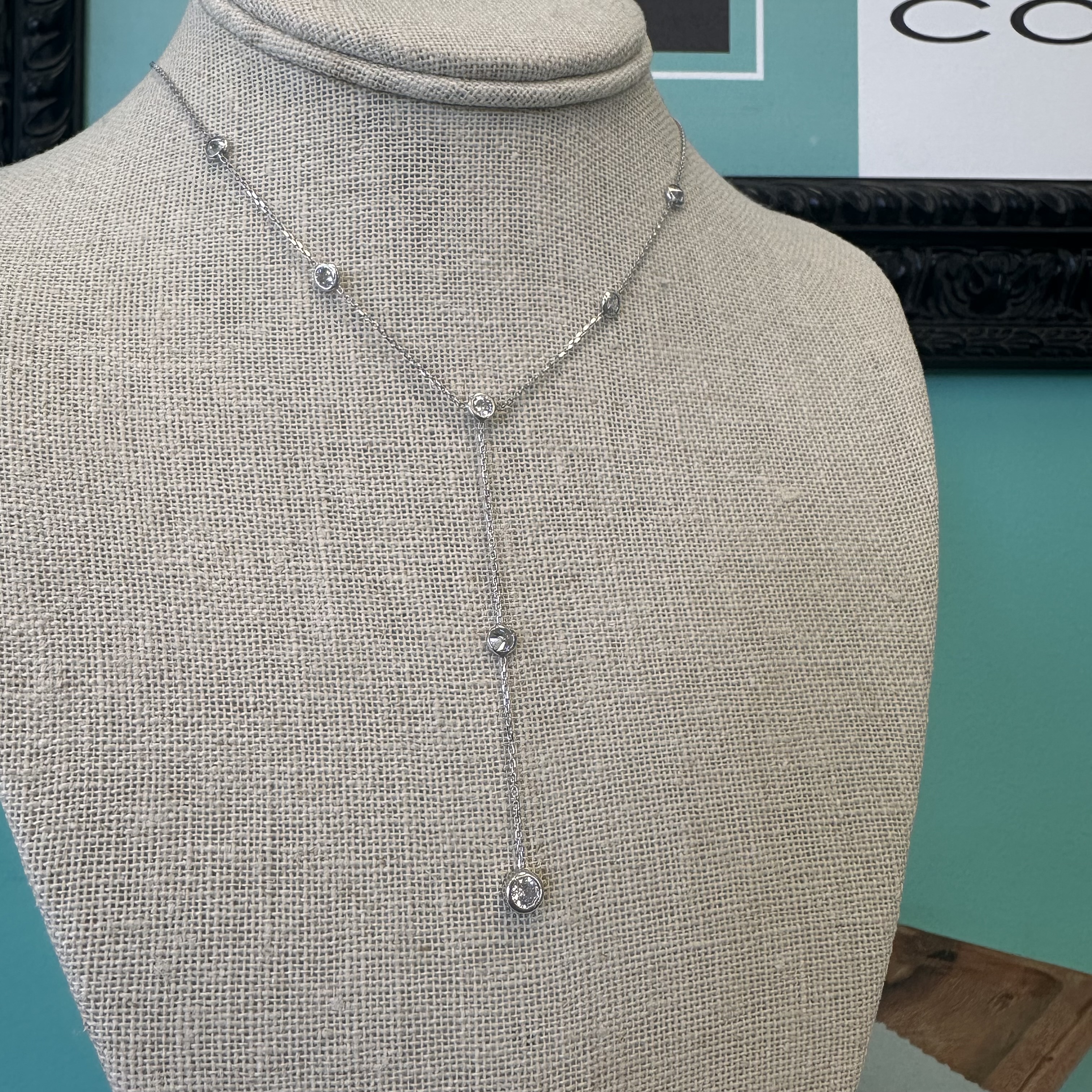 Top trending y necklace. Sterling Silver bezel set cz stones on a dainty 15" chain that extends to 17".