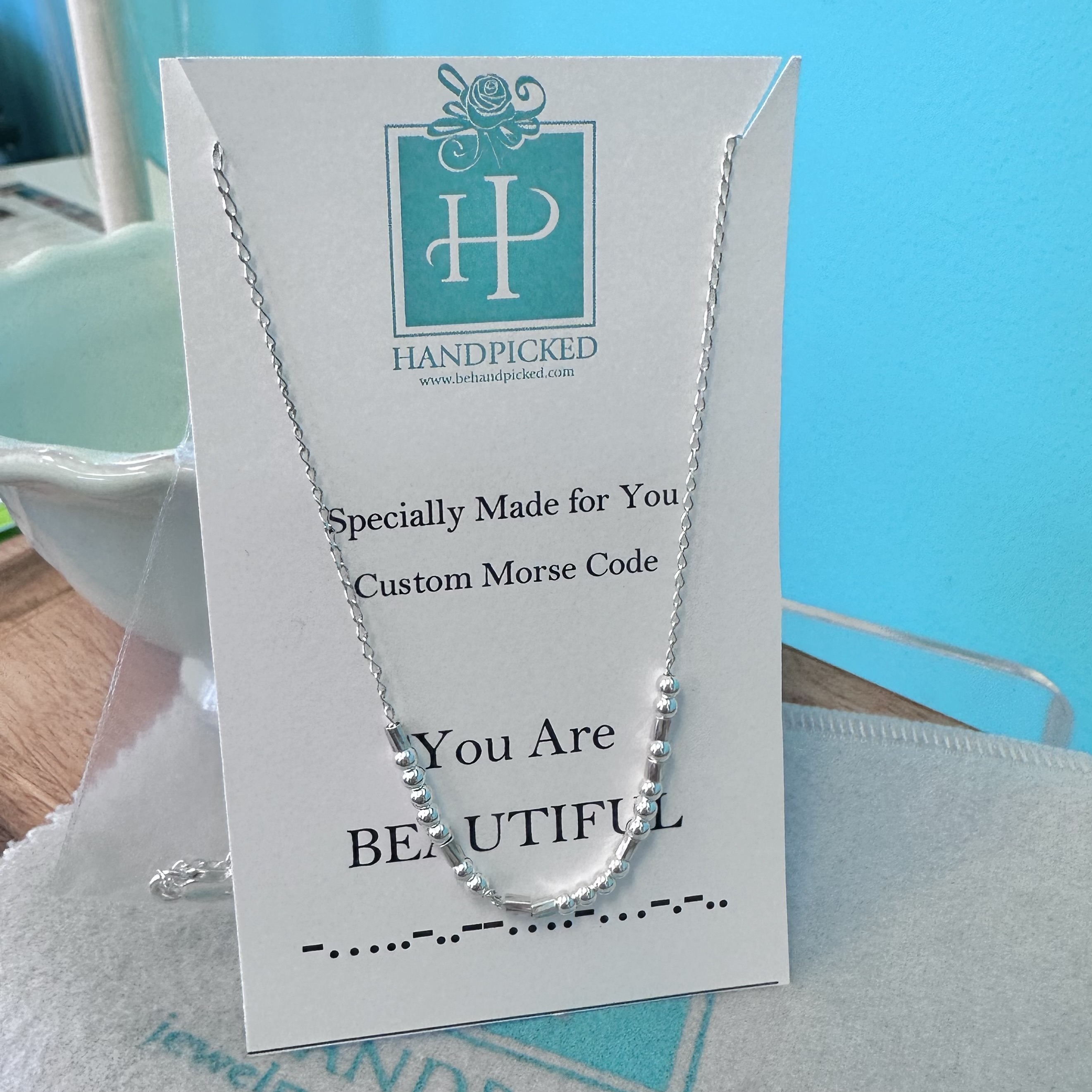 Celebrate confidence, self-love, and meaningful style with the “You Are Beautiful” Morse Code Necklace, a custom sterling silver design exclusive to HandPicked. Subtly spelled out in Morse code, this necklace carries a powerful message in a delicate, minimalist form — a personal reminder you can wear every day.