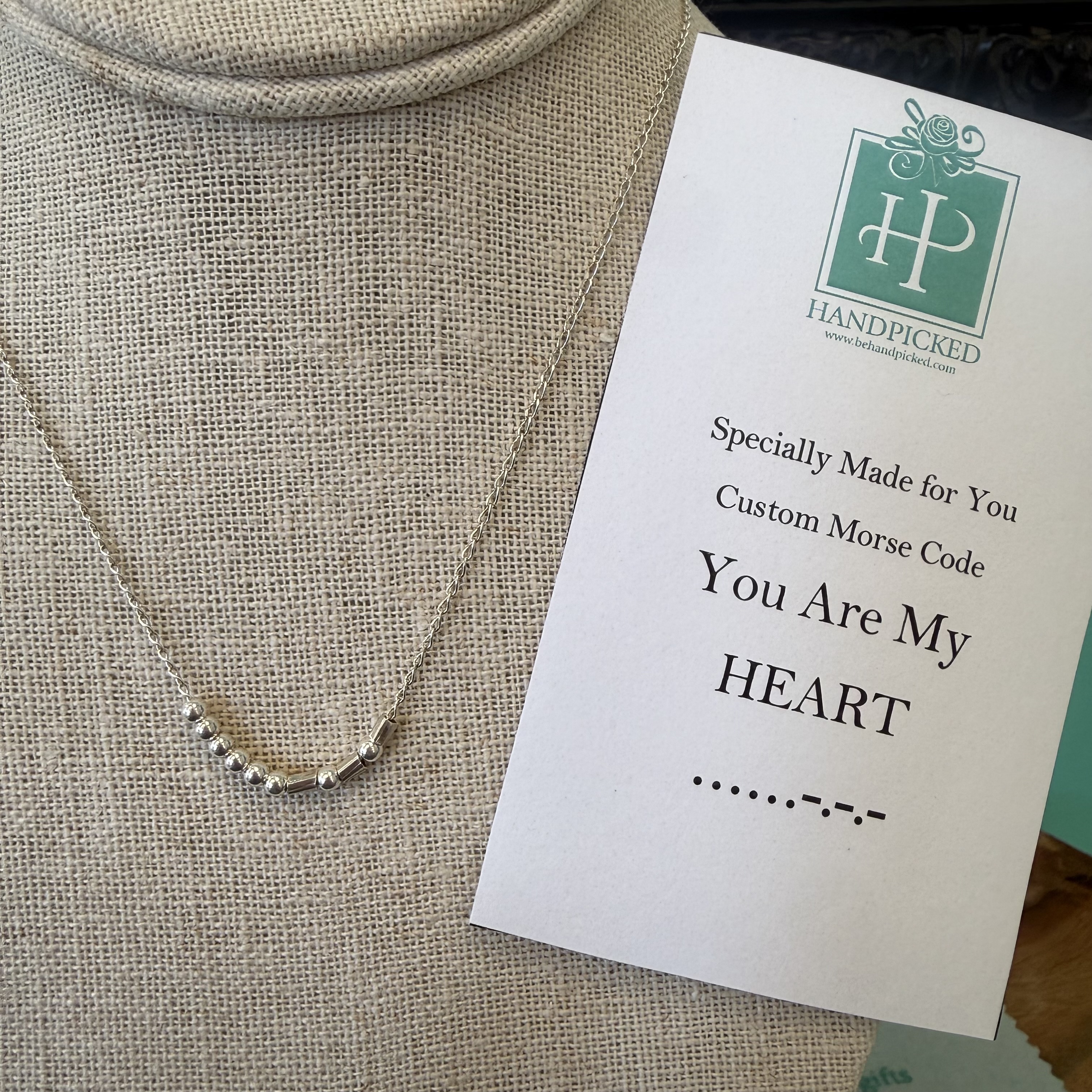 Carry a message of love and light wherever you go with the “You Are My Heart” Morse Code Necklace, a custom, meaningful design available exclusively at HandPicked. Thoughtfully translated into Morse code, this necklace offers a subtle, modern way to express a heartfelt sentiment — making it perfect for everyday wear or a special gift.